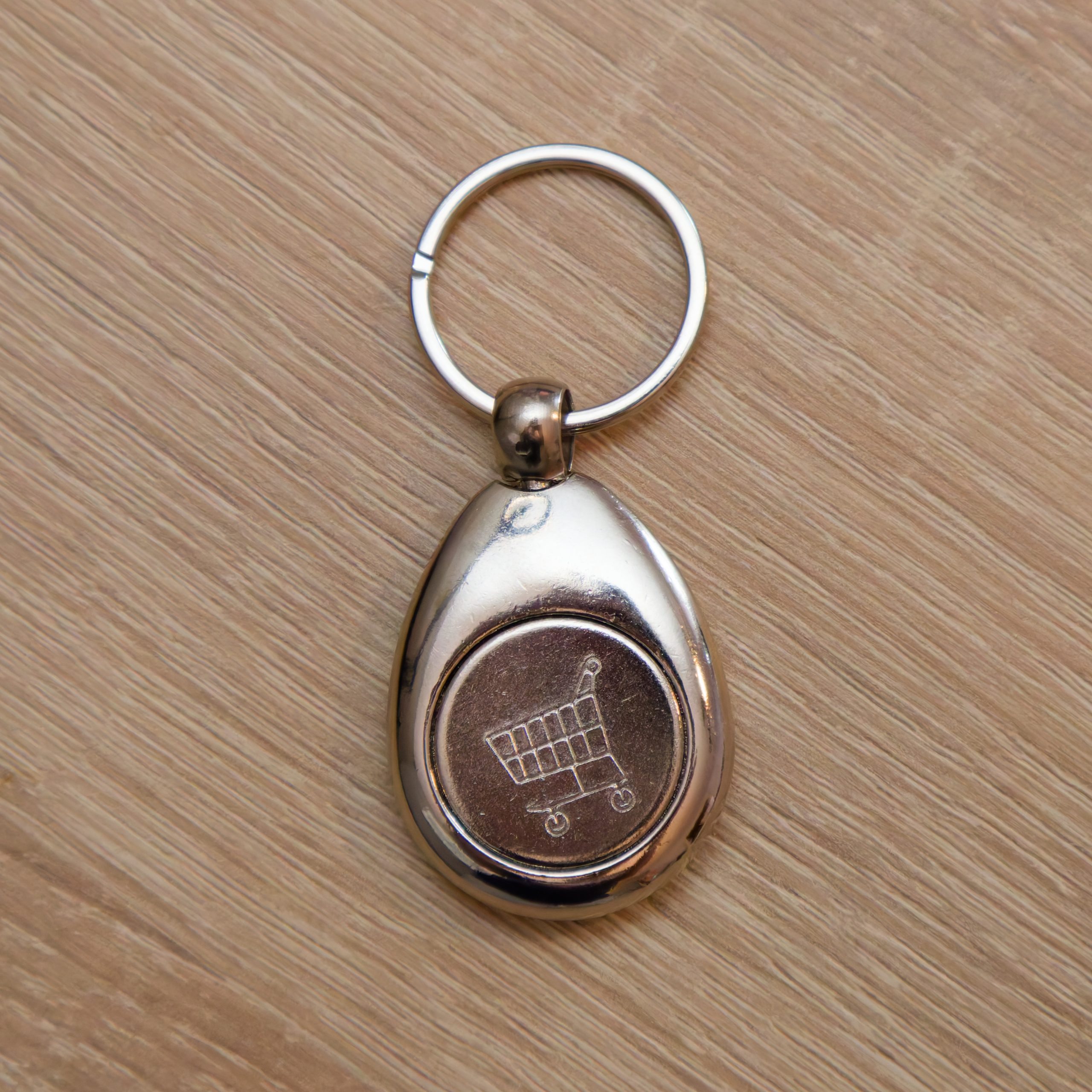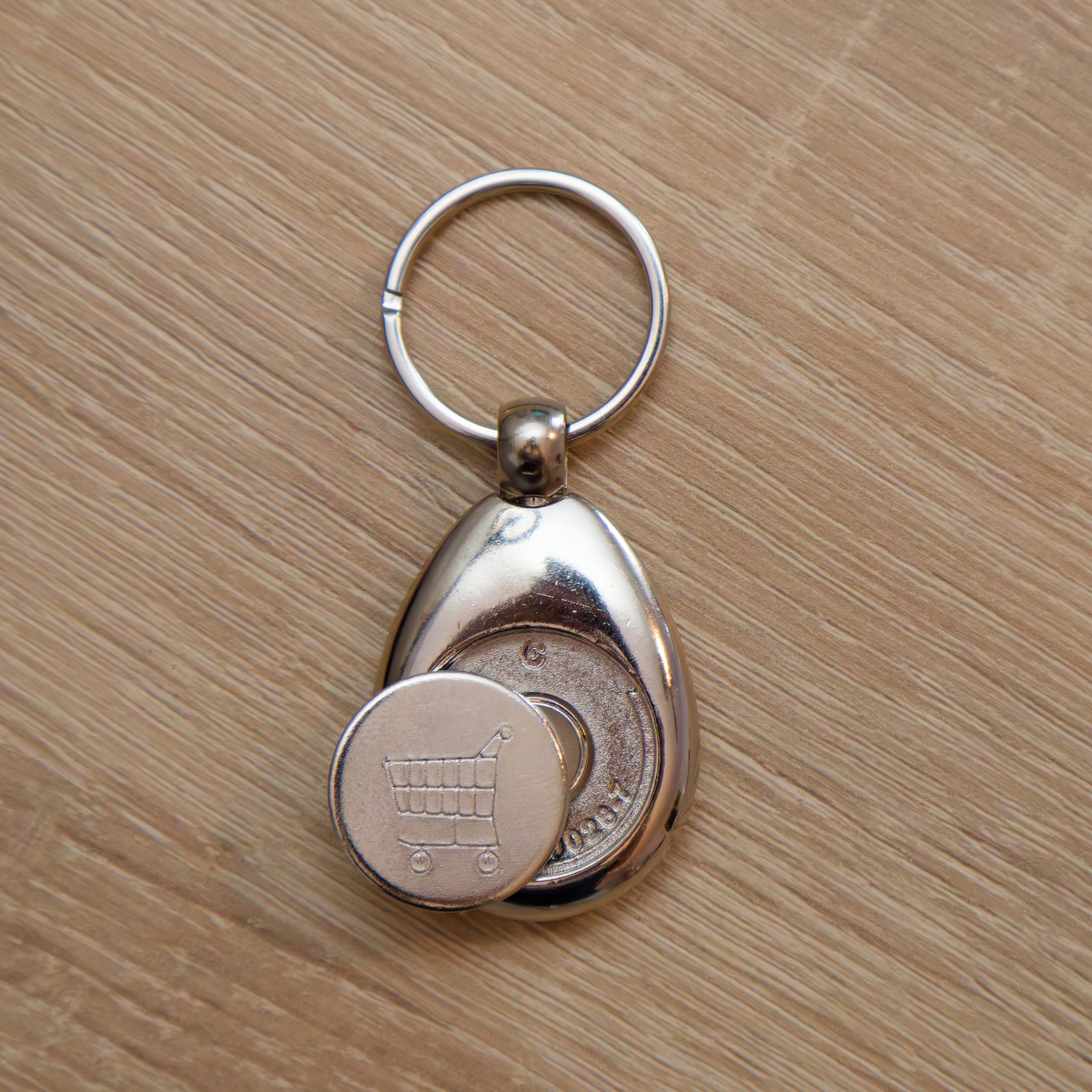 Ovaj metalni privjesak za ključeve s tokenom za kolica od 1 € kombinira personalizaciju sa svakodnevnom praktičnošću — uvijek spreman kad ti treba kovanica za kolica.